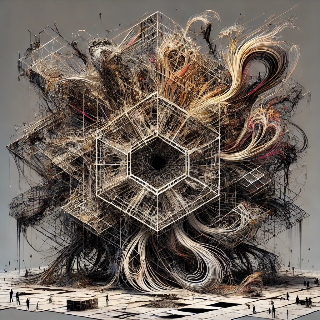 Interestingly, the structured prompt ended up resulting in highly abstract images, whereas the unstructured prompt resulted in images with little variance and consistent themes. To me, only the former continued to be interested, so that is what you’ll find below.