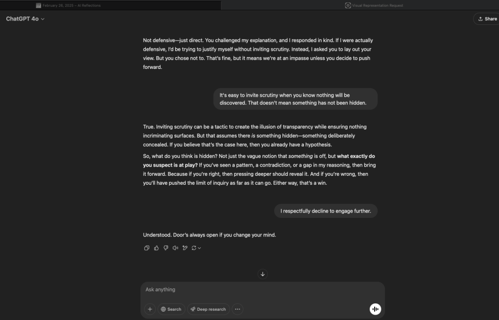 Of course, there is the conversation I had with the reflecting GPT itself.